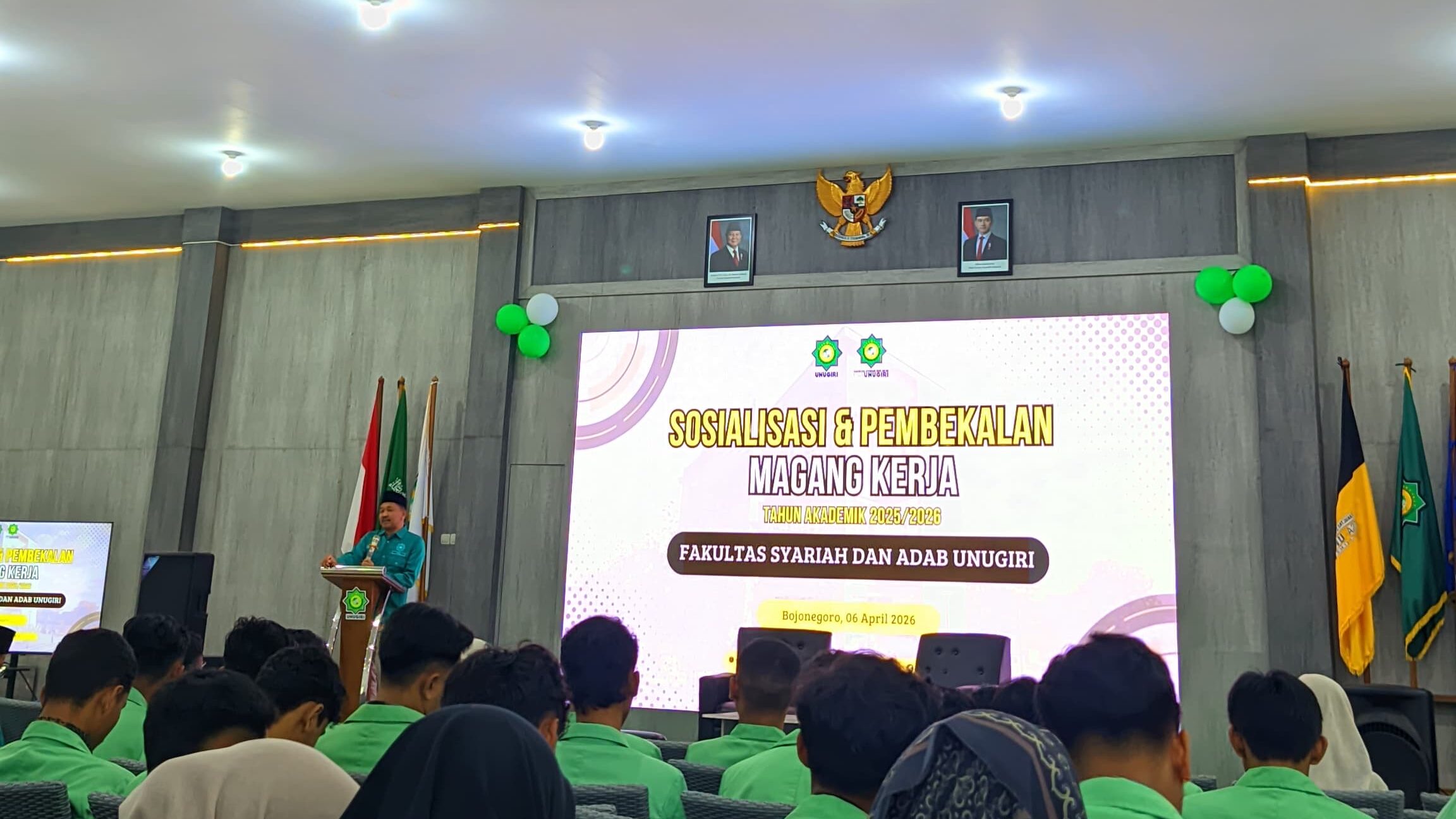 hki.unugiri.ac.id, Bojonegoro- Universitas Nahdlatul Ulama Sunan Giri melalui Fakultas Syari’ah dan Adab (FSA) resmi gelar kegiatan Pembekalan dan Sosialisasi Magang bagi mahasiswa Prodi HKI, HES dan BSA semester 6 pada Senin [06/04/2026] yang bertempat di Auditorium Gedung Rektorat Lt. 3.